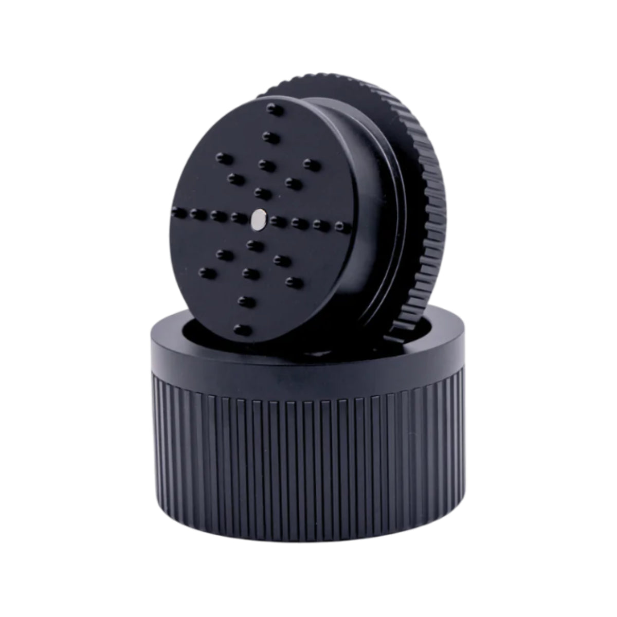 The 360 Grynder by Stache takes grinding to the next level with innovative design and precision engineering. Its standout feature—holes in the side walls—prevents buildup and ensures a smoother, hassle-free grinding experience. The 360 Grynder's rounded teeth gently separate herbs, preserving their quality, while the interior’s rounded edges funnel all material into the bottom chamber, leaving no valuable compounds behind. With no pollen screen, the 360 Grynder retains all terpenes and beneficial compounds, ensuring every grind is perfectly preserved for an optimal experience. Thanks to the shredder-style design, the small, rounded teeth will perfectly shred your herbs. This 3-piece grinder features a sleek, matte exterior and an ergonomic design for ultimate comfort and ease. Compact and efficient, it includes a convenient ashtray-style lid and comes in six stunning colors. Complete with a pollen scraper and cleaning brush, the 360 Grynder is your go-to for effortless herb preparation, offering unparalleled performance and function. |